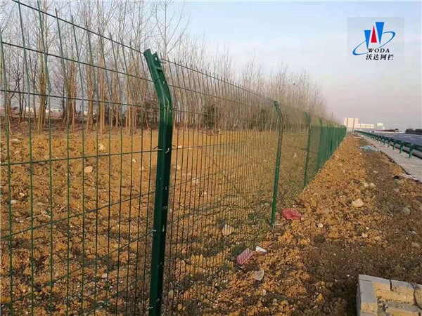 7、尺寸和型號符合要求的高速公路隔離網網片,應按圖紙規定的方式從立柱端部開始牢固安裝到立柱的掛鉤上;或將網片安裝在框架內,框架與立柱連接應牢固。所有的網片及鐵絲均應繃緊而不變形,其安裝高度應符合圖紙規定。隔離柵安裝完畢,立柱基礎均需進行最后壓實處理。