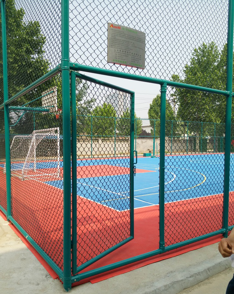 籃球場護欄網材質:鍍鋅低碳鋼絲PE/PVC包塑處理;