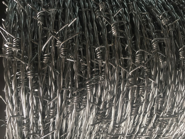 除型號(hào)絲徑之分,主線絲又分為單股刺鐵絲、雙股刺鐵絲、三股刺鐵絲,刺絲均為四個(gè)刺頭。全自動(dòng)刺繩機(jī)擰編而成,牢固美觀。按處理工藝分為電鍍(冷鍍)刺鐵絲、熱鍍鋅刺鐵絲、浸塑刺鐵絲。