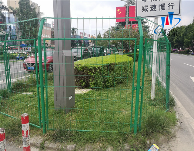 園林隔離防護網,網面焊接后進行了折彎處理增加了防護網整體強度。園林隔離防護網表面采用了全新熱浸塑工藝,從而達到了讓園林隔離防護網在戶外雨淋日曬不會生銹。立柱采用國標Q235鋼管,表面處理也同樣采用熱浸塑,使護欄網整體使用壽命12年以上。產品價格低廉,品種全,樣式美觀,防腐壽命長,特別適合大面積使用。